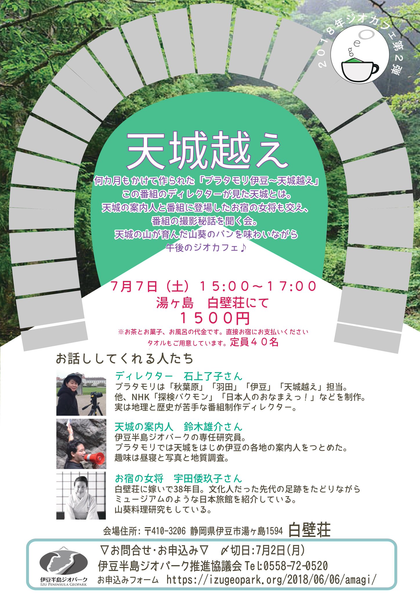 伊豆半島ジオパーク推進協議会が、7月7日(土)天城湯ヶ島 白壁荘にて ジオカフェを開催します。